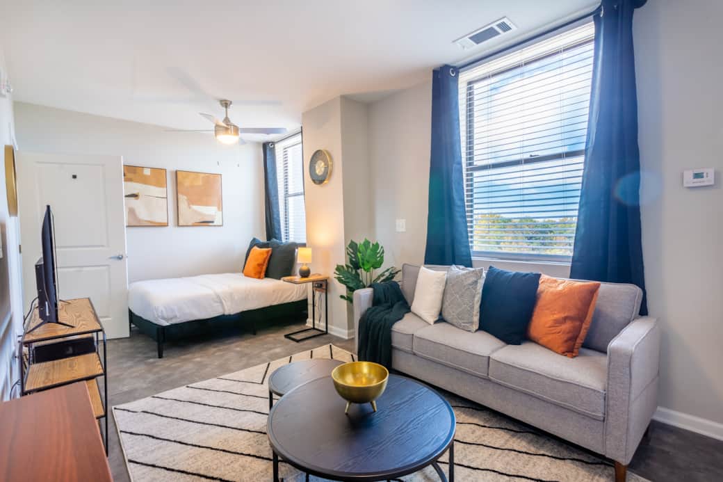 Just steps away from the business and entertainment district this small sleek studio is located in the heart of downtown mobile minutes away from local business offices, restaurants, coffee shops, night life and bars! This stunning studio apartment is equipped with everything to make you feel at home from washer and dryer connections, high speed internet, coffee maker and much more! Some of the amenities that also make this place even more desirable Are it’s inside and outside rooftop lounge areas with views of the downtown skyline, it’s downstairs basement lounge where you can relax after a long day or hang out with friends and a fully equipped gym. All of these amenities are available to you during your stay here! This studio sits directly between interstate I-10 and I-65.